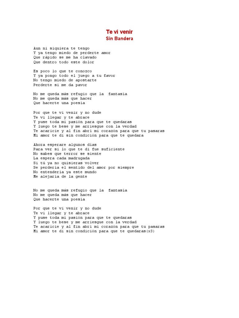 Te Vi Venir - Sin Bandera Pdf Pdf
